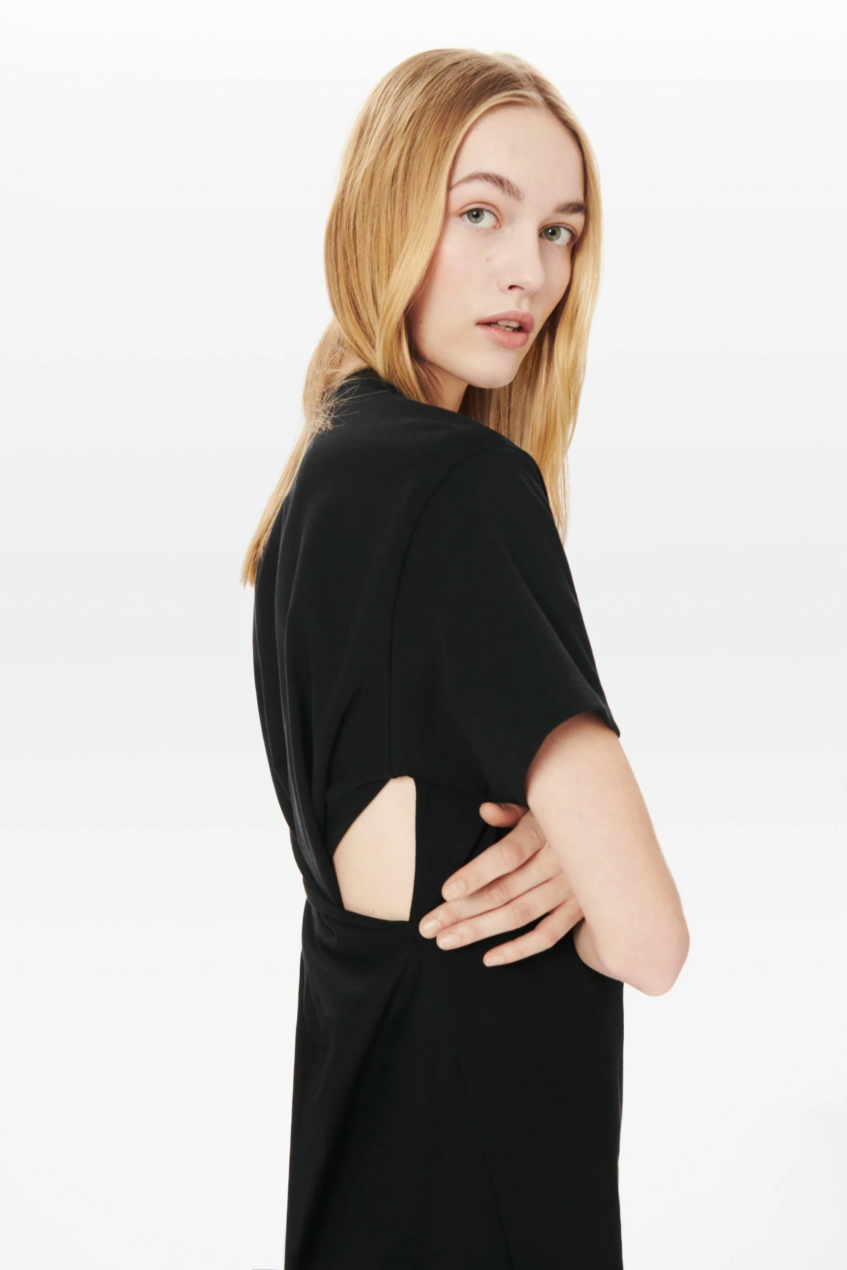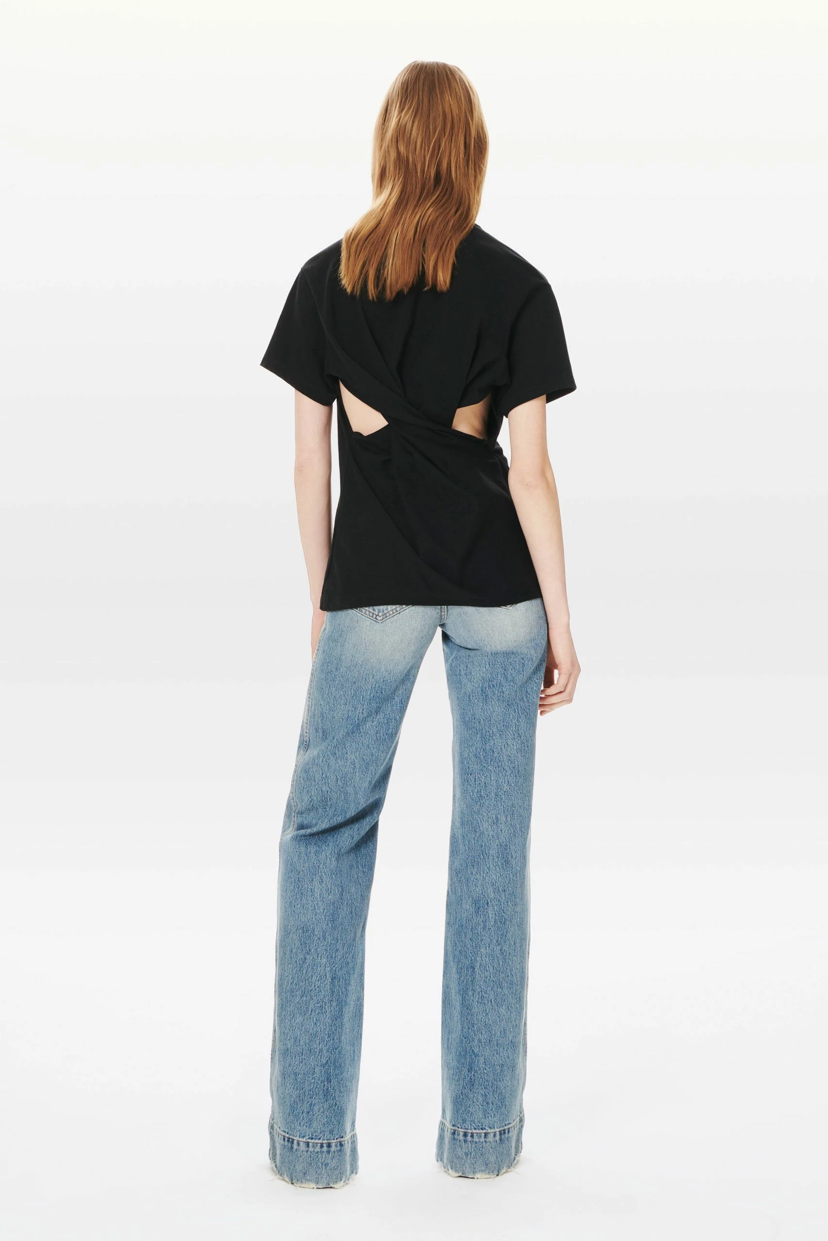The Victoria Beckham Twist-Back T-shirt in Black is a classic-fit top that epitomises the Spring Summer 2022 collection’s strong yet soft approach. Made in Portugal from a midweight, 100% organic cotton, its unique, twist-back detail offers an unexpected touch and speaks to the season’s quiet confidence. Look for the brand’s signature VB embroidery at the centre back of the neck.