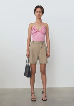 The Fiasco Halter Top from Viktoria And Woods is crafted from their signature marle rib, reimagined in a seasonal pink. This halter-style top showcases a deep V neckline with thin straps designed to be worn around the neck. With a raw hem and subtle gathering at the bust, pair this style with tailored pants for elevated styling or paired down with denim shorts.