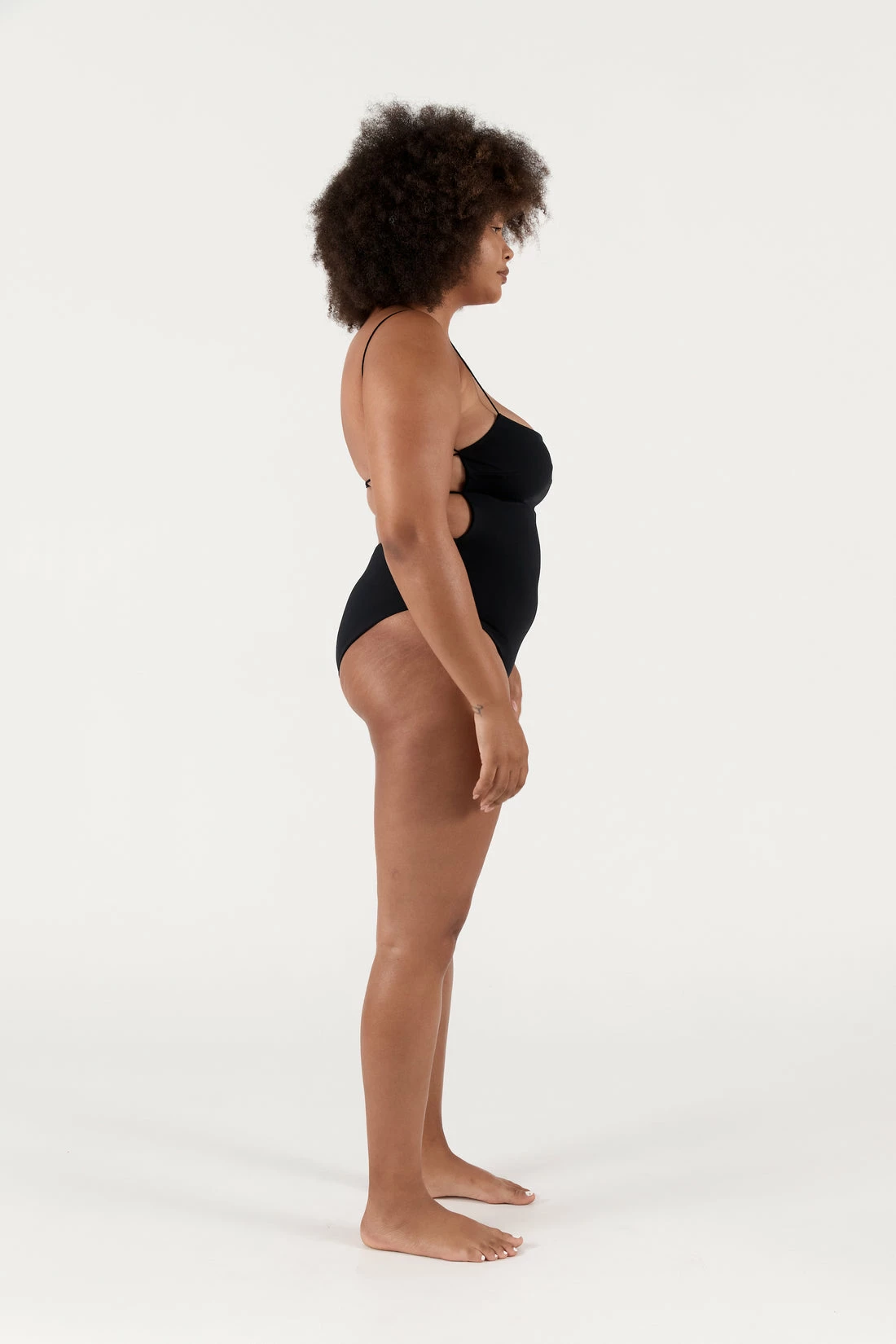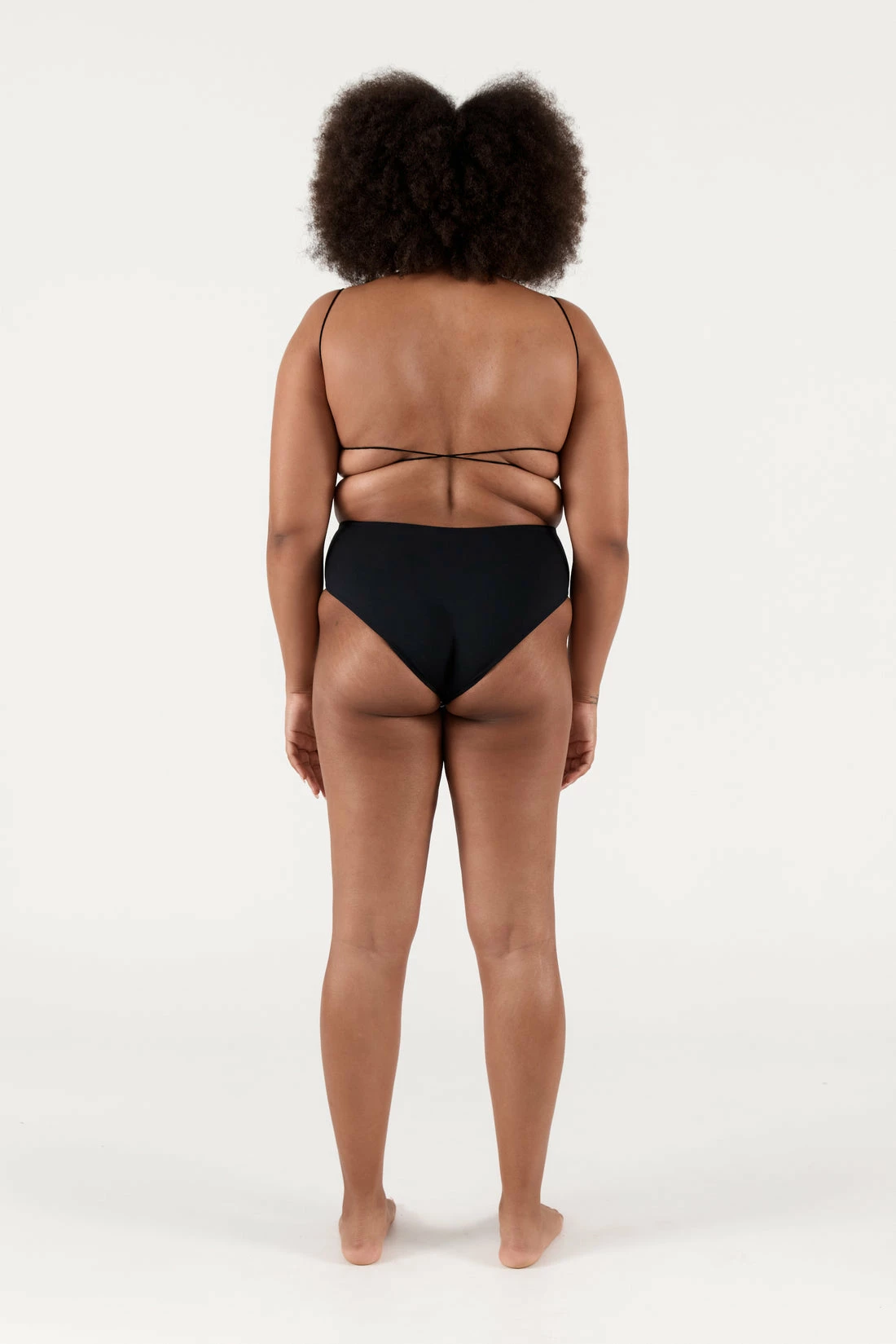 The Fine Strap One Piece from Ziah is a project of both unveiling and concealment. Boasting maximum coverage across the bust with a straight neckline, A sensuous high-cut leg, a low-back, and a fine-strap criss-cross detailing across the back. Designed to be worn both in the water and as a bodysuit, the Fine Strap One Piece translates seamlessly from beach to street.